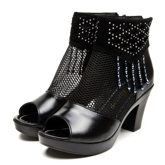 Women's shoes new spring and summer Rome female high heel waterproofing fish mouth net shoe female coarse heel sandals